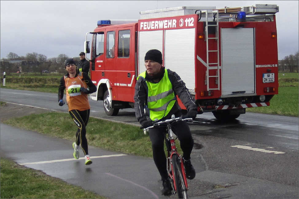 Nur noch wenige 100m vor dem Ziel wird Jens mit starken 2:45:04 den Marathon gewinnen.