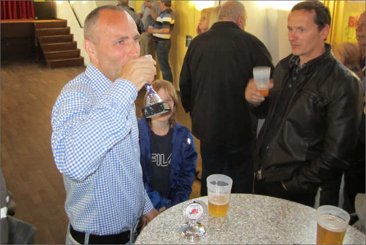 hier zeigt Sven wie es geht direkt aus dem gewonnenen Pokal zu trinken....