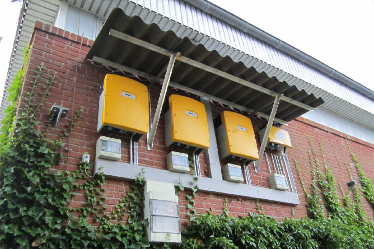 Eine der Schaltstationen der neuen Solaranlagen auf den Schuldächern