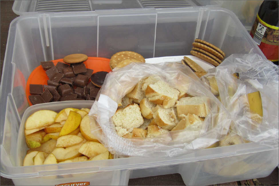 Schokolade, Kekse, Brötchen, Äpfel, Bananen, und.....